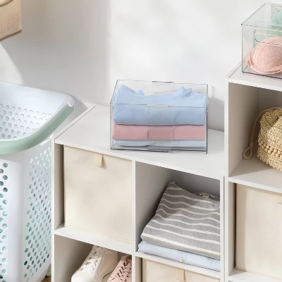 This Small All Purpose Clear Expandable Bin from Brightroom™ will keep your home organized and clutter-free. Featuring a clear hue, this storage bin lets you see the stored contents, while the expandable design provides extra space for storing large items. With cut-out handles for easy portability, this 256-cubic-inches bin is ideal for storing throws, pillows, and other frequently used items.