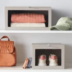 Bring organization to your space with the help of this Hardside Fabric Front Open Bin from Brightroom™. Featuring a cubical silhouette, this hardside storage bin with a fabric covering offers you additional storage space for everyday household items. Showcasing a transparent front to let you know the contents without having to open it, it features a front-open design with a fabric pull on top for easy accessing the contents. Use it to store a variety of everyday household items to keep your space clutter-free.