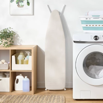 Iron your clothes effortlessly with this Standard Ironing Board with Cover from Brightroom™. This standard iron board features a polyurethane foam base and a cotton cover in a cream hue that provides a stable base for your clothes. It features metal legs that can be locked to the desired height, and the foldable design offers convenient storage when not in use.
