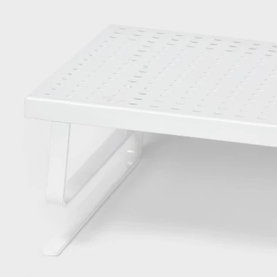Bring extra storage space to your desk with the Under Desk Shelf from Brightroom™. This under-desk shelf features holes to elevate the simple look and provide space for wires or cords. Made of metal, this white shelf is easy to slide and attach to the desk. Use it to store your books, notepads and other items while maintaining a clean desk.
