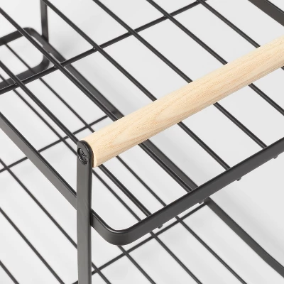 With this Wood Handle Tiered Vanity Organizer from Brightroom™, you can save space on your bathroom countertop while still keeping your everyday essentials easily within reach. Featuring a two-tier design and convenient steel wire construction, this simple yet stylish vanity organizer is perfect for placing canisters, bottles, washcloths and more to keep your countertop tidy while providing you access to your most-used accessories. The rust-resistant design is simple to wipe clean with a soft cloth, and the wire sides extend into two wooden handles on top that you can use to move the organizer or hang accessories like a brush or loofah.